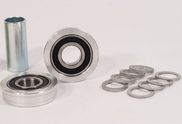 RETRO-American cups and bearings for your Profile Racing 3-Piece Race Style Crank set – comes with flat cups, sealed bearings, tube spacer and aluminum spacer washers. These are the original styled American BB cups, perfect for your vintage restoration. Silver or Black. For 19mm Axle & American BB.