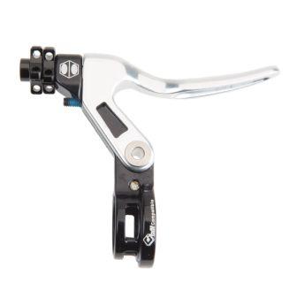 The Box Genius brake levers are the first ever to incorporate a clamp for ODI® Lock-On® grips. This ensures that your grips stay put while eliminating the need for an extra clamp. At roughly 50 grams, these cold forged and CNC-machined levers beat any other on the market. Genius levers have a built in return spring and are fully compatible with carbon handlebars. The Mid reach lever features a new design that puts it in the same reach position as the Long, but with a more BMX-specific blade for better one-finger leverage. Other features include adjustable reach, a titanium mounting bolt and stainless steel hardware. Genius levers are designed to work with linear-pull brakes and are excellent for BMX, mountain, city, urban and tandem flat-bar bicycles.