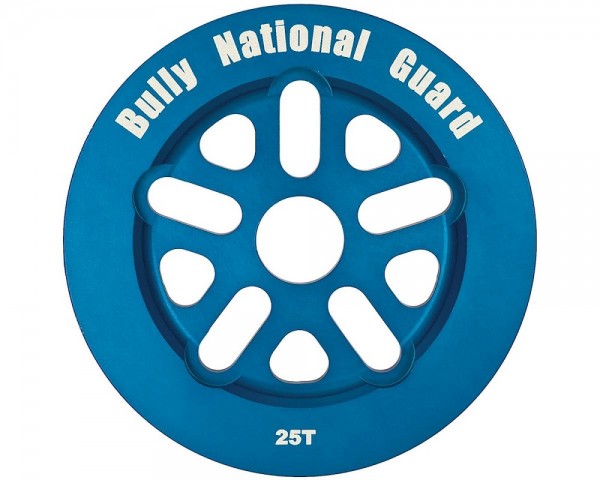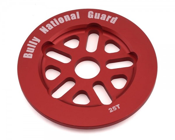 The Bully National Guard Sprocket is CNC machined in the USA from 7005 series aluminum and features a fully integrated sprocket guard to protect the teeth and chain from grind damage. The multi-spoke design not only looks clean, but helps shed unnecessary weight.