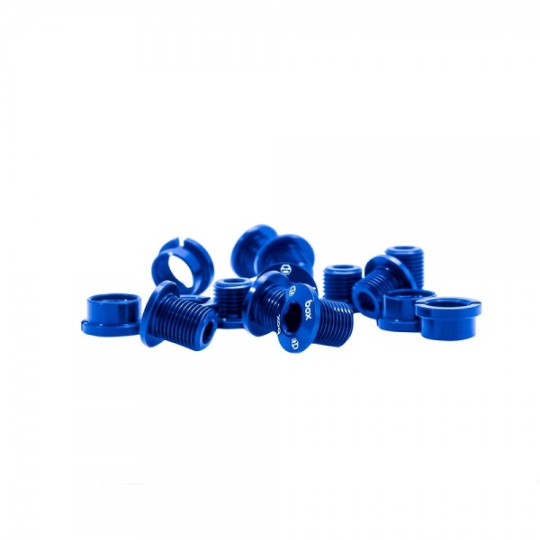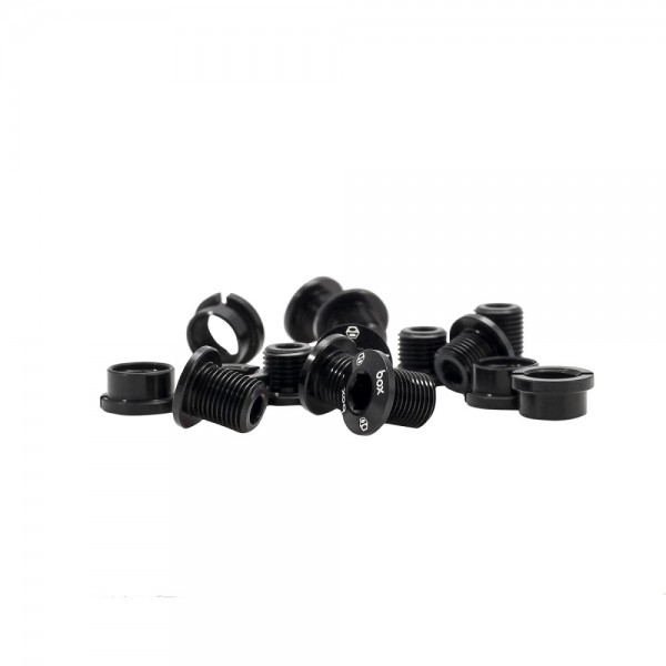 Box One 7075 Alloy Chainring bolt kits include five 8.5-mm front bolts, five 6-mm front bolts, and five 5-mm rear nuts, so they will fit just about any chainring/crank combination, including those with threaded holes.