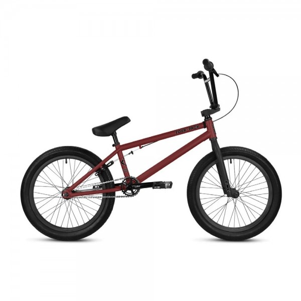 Size/Geometry/Components:  1-1/8" Threadless press-in Headset / DK Jump top load, 53mm reach Stem / 8.8” rise, hi-ten steel Handlebar / DK Tsuka w/ press-in bar plugs Grips / Wise hinged alloy Lever / Wise alloy U-brake Brake / 19mm sealed Mid Bottom Bracket / DK Replica 25T, steel Sprocket / KMC Z-510 Chain / Wise tubular chromoly 3-piece, 170mm, 8-spline spindle Cranks / DK Blender PC platform Pedals / Alloy, sealed, 3/8” axle Front Hub / Alloy, semi-sealed, oversized axle, 9T driver Rear Hub / single wall, 36-hole Rims / 20x2.3” Innova Street, 65psi Tires / DK 1-piece padded seat/post combo Seat / 25.4mm, alloy Integrated Seat Post / Alloy Seat Post Clamp / 3D head tube badge