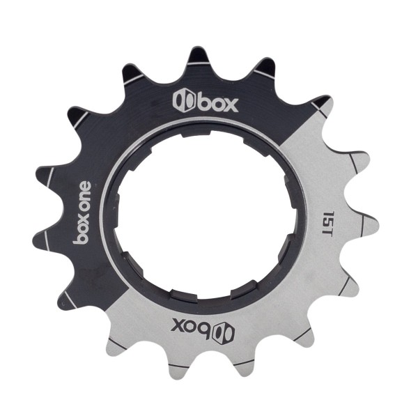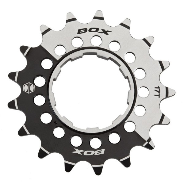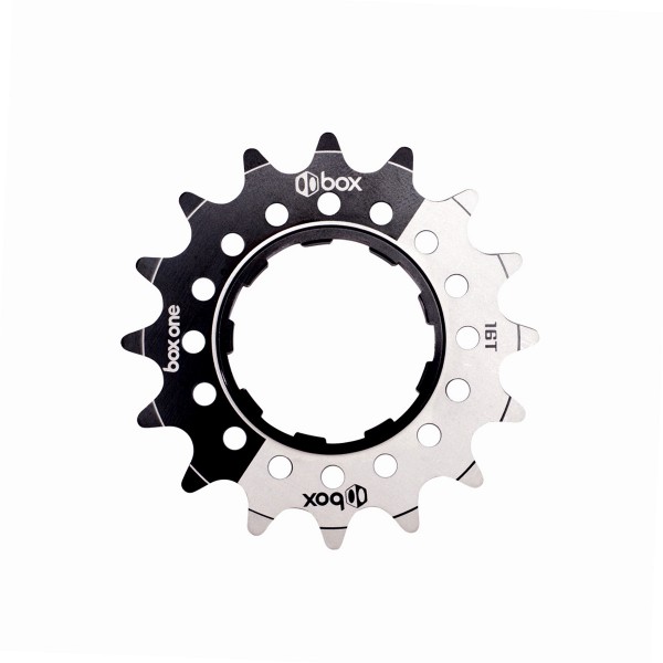 Box One Single-Speed Aluminum Cogs are 7075-T6 aluminum alloy. It's designed to fit Shimano™ compatible cassette hubs and has a 5mm wide inner base, giving a more solid interface with the cassette body. The alloy cogs are anodized black with laser-etched graphics.