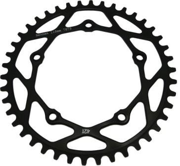 Only Rennen offer a single speed specific tooth profile which have been designed to extend tooth life. At 2.29oz (65 grams, 42T) this makes Rennen 110mm Chainrings one of the lightest on the market.