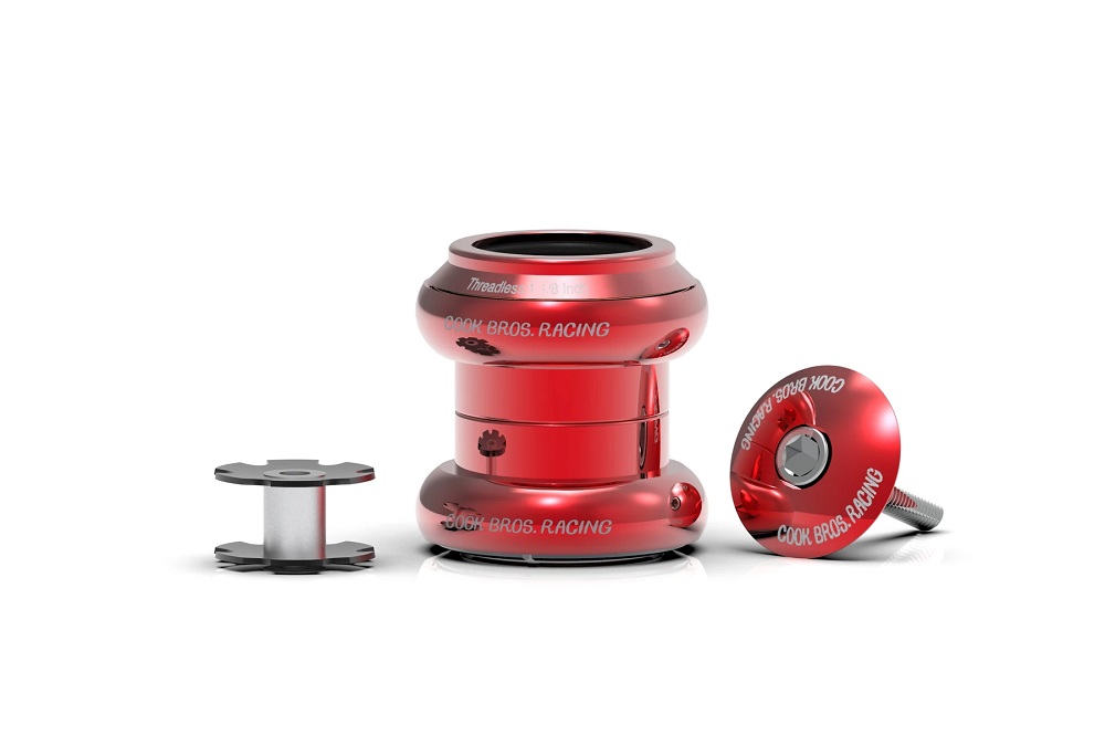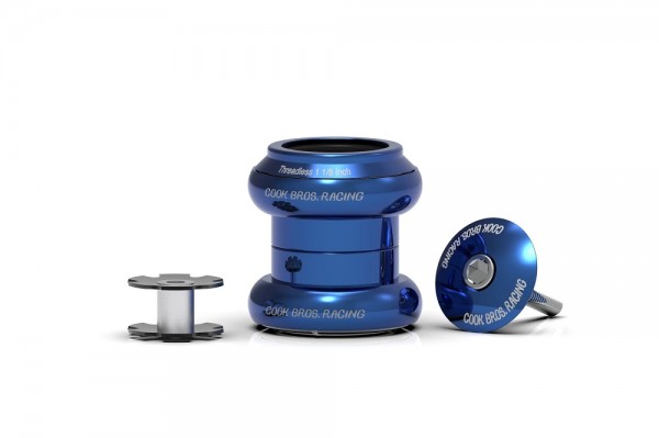 At the heart of the Cook Bros. Racing threadless headset are two super-smooth, 45×45, sealed bearings. A split aluminum crown race makes installation and removal from forks super easy.