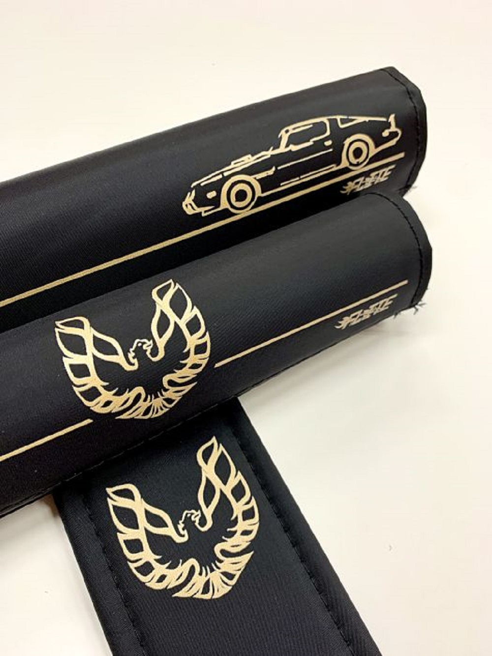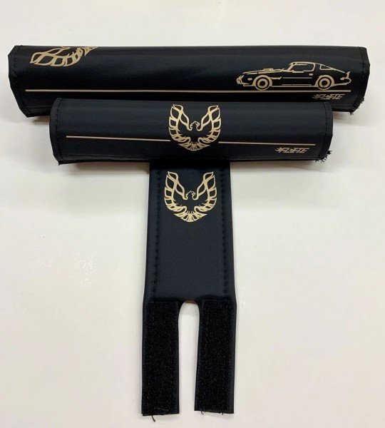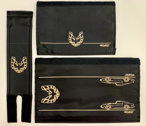 The Bandit is back! Straight outta 1978, the "flaming hood chicken" has never looked so good. Classic black and gold color combo with a nod to the road crew. The perfect compliment to your vintage BMX build or modern rider. Hand-screen printed nylon construction with Velcro closures, made by hand in the USA by Flite BMX. East bound and down, loaded up and truckin'!