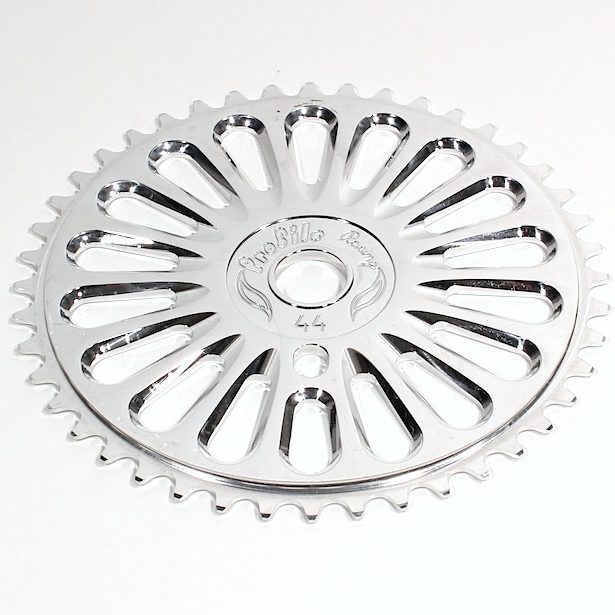The Profile Imperial gear is CNC machined from billet 6061 aluminum in the USA!!! It has a 3/32” tooth width and is designed for 3-Piece cranksets with 19mm spindles only. It’s bore is 22mm and it is supplied with a 19mm silver steel adapter. It is a “bolt on” style and requires a sprocket bolt to be attached to crank arm.