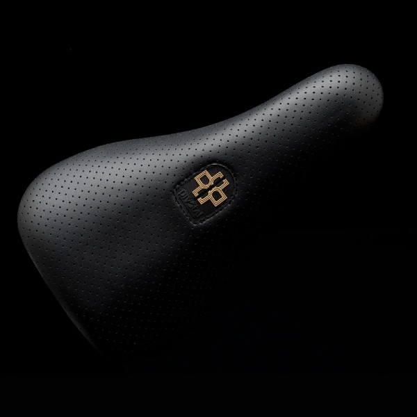 The DUO Perforated Pivotal seat features a padded top covered by a one-piece perforated vinyl cover, embossed DUO Brand logo, solid Pivotal bolt, and plastic bumpers under the nose and tail.