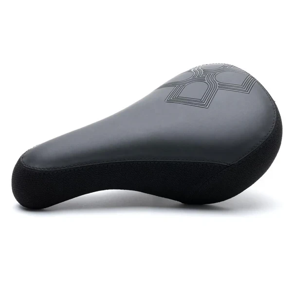 The DUO Brand Monotripe Stealth Pivotal seat features a 4-panel covering with a vinyl top and kevlar sides, embossed Monotripe emblem, sewn-on DUO Brand patch on the rear, hollow pivotal bolt, and plastic bumpers under the nose and tail.
