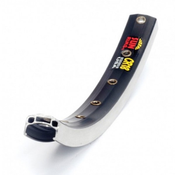 The Sun Ringle CR-18 is a durable, inexpensive touring rim with a machined brake track and single eyelets* Feature "ABT" brushed brake tracks for consistent braking* Triple-box construction for durability* Pinned construction* Ample 22.5mm width works well with a variety of tire widths