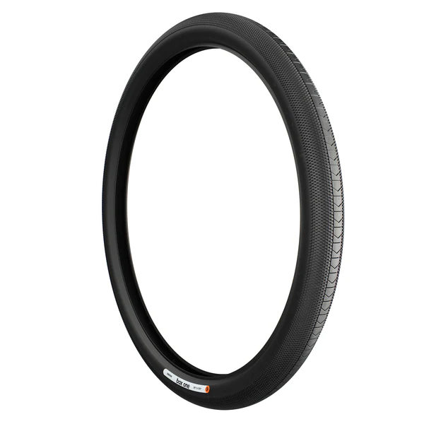 Box One™ 120 TPI Folding Tires were engineered with a minimalist approach to hit lofty goals for weight, traction, rolling resistance, and rebound. At its heart is a super-supple 120TPI casing where we forced in as much rubber displacing nylon as possible. Skin walls are employed to reduce drag and further reduce weight. We flanked the high-density casing with a tightly packed hoop of aramid fibers. Finally, we draped this all with BMX race-specific tread that transitions from a center band with a large contact patch to unidirectional tactile knobbies on the sides. This aggressive combination allows for maximum traction out of the gate, immense adhesion in the corners, and low rolling resistance in the straights. A state-of-the-art mixture of compounds is used in various areas of the apex, wall, bead seat, and center – with higher silica content in the tread to again remove more weight.