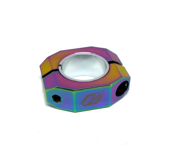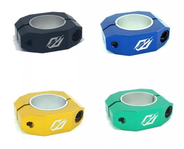 The TNT Double Bolt Seatpost Clamp is an anodized aluminum seatpost clamp with a classic design. The clamp is 31.8mm (1-1/4") and includes a built-in shim for use with 28.6mm (1-1/8"mm) seatposts. The TNT logo is laser-etched on the clamp.