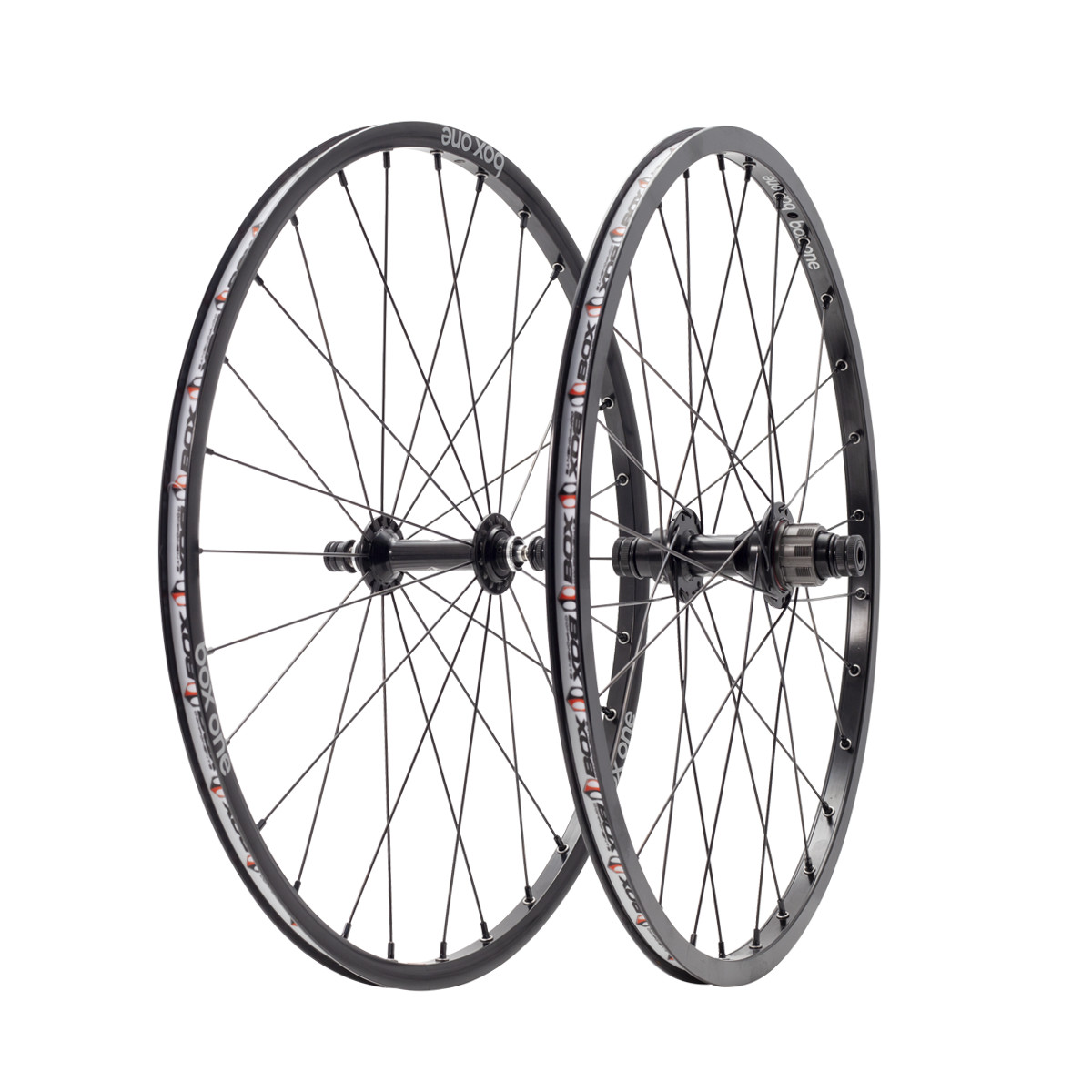Hand built in Southern California, Box Three™ 451 (20 x 1 1/8”) wheels are made with Box One™ front and rear rims and 28-hole Box Three™ hubs laced radially front and 3-cross rear with 15 gauge stainless steel spokes and alloy nipples.