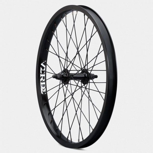The Verde Regent sealed front wheel is high-quality, price point aftermarket BMX wheel. Quality construction begins with a low flange aluminum Verde hub with 3/8” male chromoly axle and sealed cartridge bearings. Double wall pinned 36-hole aluminum Regent rims are laced with 14 gauge black spokes with brass nipples. Compatible with Verde Regent thread-on hub guards.